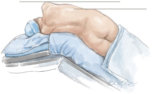 Paravertebral or intercostal blocks are positioned under camera vision. Insufflation of the airway may have already been performed before separation of the lobar bronchus. Testing the stump at the end of the procedure has a potential risk of barotrauma or peripheral showering of the parenchyma so may not be performed. The instruments are removed under direct vision, and the camera is replaced into a port, undocked. Irrigation ensues and at this time the table may be moved into a steep Trendelenburg position to facilitate suction of all the fluid. Once the table is righted, a drain is placed and the lung is allowed to inflate under direct vision with some degree of positive pressure, before the camera is finally removed and the port sites closed in layers.