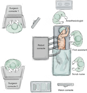 Patient safety is dependent on excellent communication between the console surgeon and the first assistant with use of unambiguous words. The first assistant should clearly state what their intended action is and it must be backed up by a confirmatory statement from the console surgeon, before the action is performed. There should be a system of dry-run emergency scenario rehearsals in place before operating as a team, to ensure effective responses to significant airway problems and bleeding issues if they arise (Table 1).