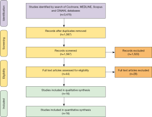 Overall, 1,567 records were identified in the literature search. Following application of the inclusion and exclusion criteria, 16 studies containing 752 patients were included for analysis. Of a total of 752 patients with IVDU infective tricuspid valve endocarditis, 14% underwent valvectomy and 86% underwent replacement. A PRISMA flow diagram depicting the overall search strategy is provided in Figure 1. A manual search of references did not yield further studies.