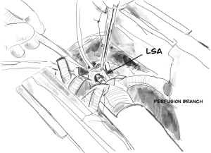 Adjunctive strategies for spinal cord protection are often employed, including cerebrospinal fluid (CSF) drainage, maintaining an adequate mean arterial pressure (MAP), and in some cases, performing an extra-anatomic bypass of the left axillary artery (13). Emerging techniques aimed at reducing the duration of circulatory arrest, such as the aortic balloon occlusion technique, are also being explored (17).